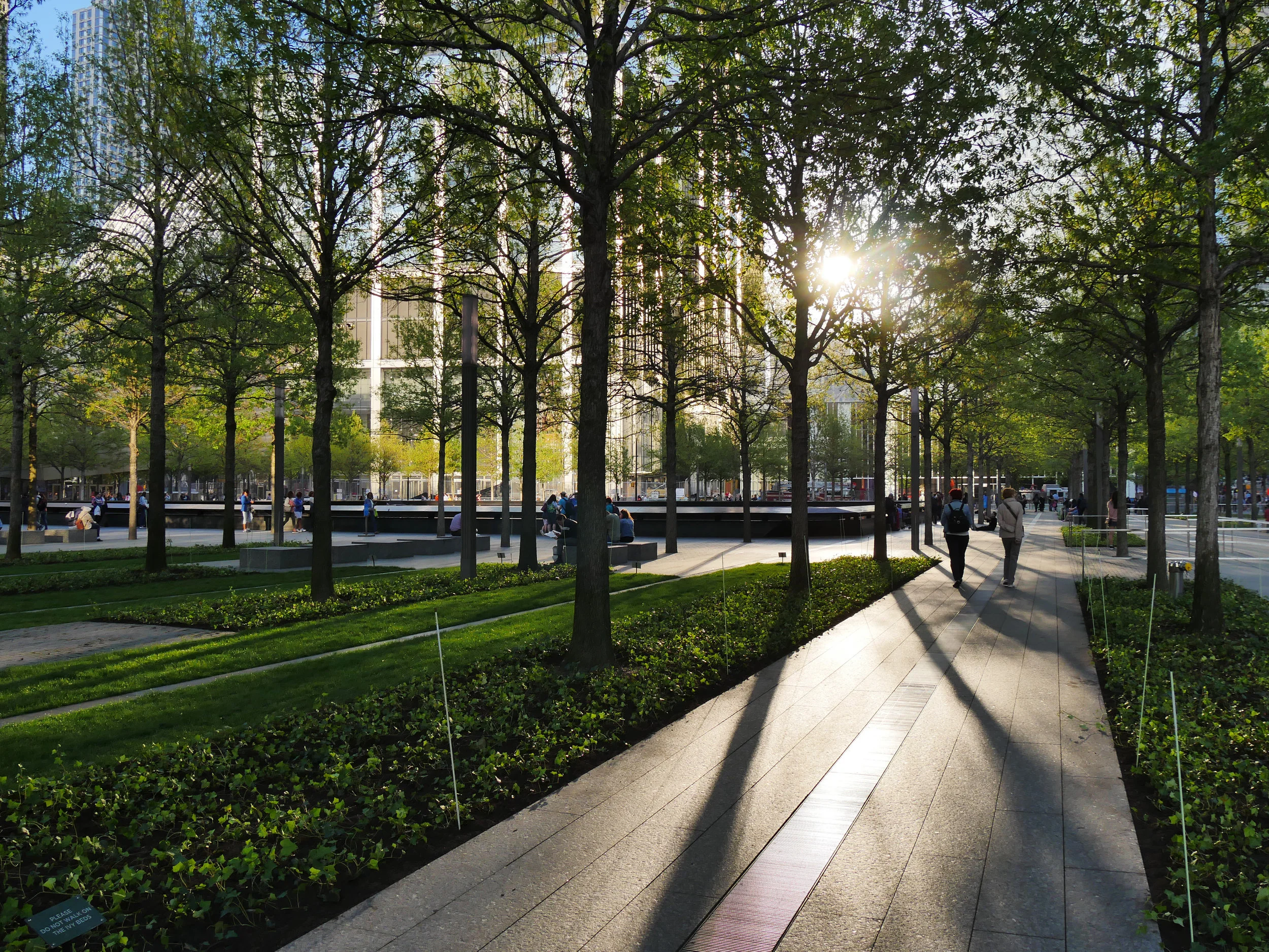 Aligned into dramatic colonnades when experienced in the east/west orientation while appearing random in all others, the oaks are a strong formal expression that nonetheless produces significant ecosystem services. The trees reduce the urban heat island, support native bird populations and provide a substantial carbon sink in Lower Manhattan.